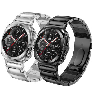 Moderní kovový řemínek z nerezové oceli se skládací sponou kompatibilní s hodinkami Samsung Galaxy Watch Ultra 47 mm.