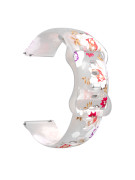 Stylový řemínek s květinovým potiskem na jemně matném silikonovém materiálu je určen pro hodinky s osičkami o šířce 20 mm. Je pružný, ohebný a jeho nošení je maximálně pohodlné i při celodenním používání.