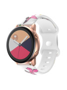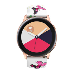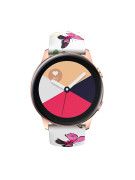 Stylový řemínek s květinovým potiskem na jemně matném silikonovém materiálu je určen pro hodinky s osičkami o šířce 20 mm. Je pružný, ohebný a jeho nošení je maximálně pohodlné i při celodenním používání.